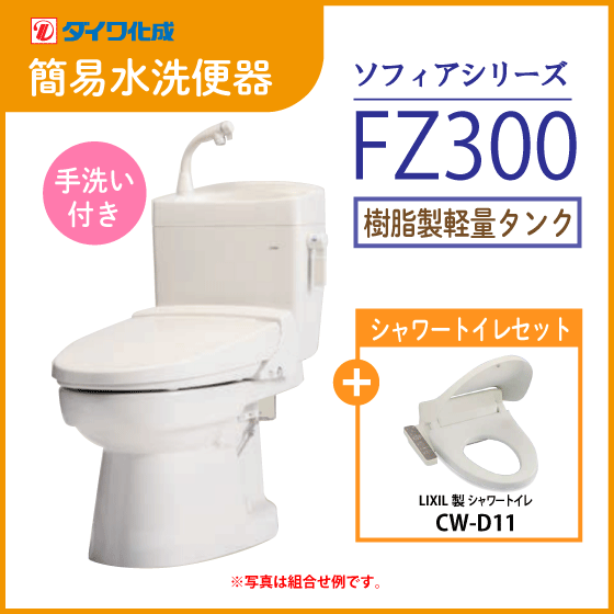 > 簡易水洗便器 簡易水洗トイレ クリーンフラッシュ「ソフィアシリーズ」 FZ300-H00(手洗付)・シャワートイレセット ダイワ化成