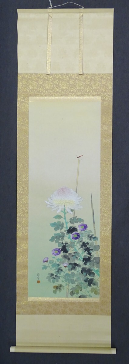 > ・品名: 掛軸 ・作者: 田中竣 ・画題:「喜久之図」・技法: 日本画(直筆)(B2-HIO-R4-6-13-85.8)