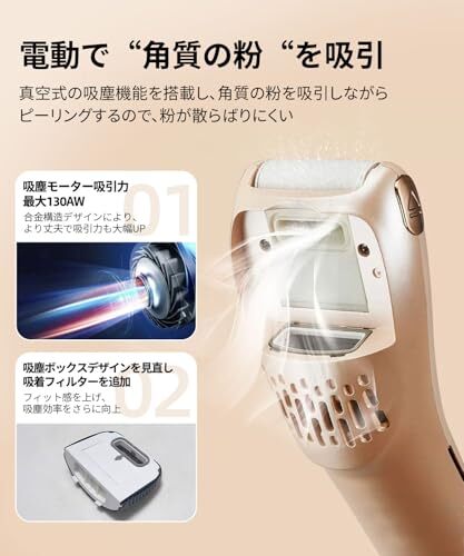 - gold 電動角質リムーバー かかと削り USB充電式 吸塵機能 角質やすり 水洗い可能 電動角質ローラー かかとケア 角質ケア