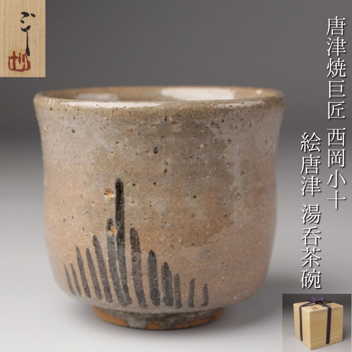> 【LIG】唐津焼巨匠 西岡小十 絵唐津 湯呑茶碗 共布 共箱 酒器 茶道具 ⑥[.-W]25.25.06