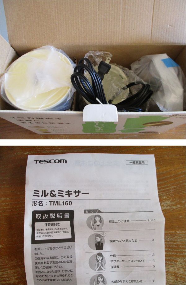 > 【ほぼ未使用】TESCOM テスコム ミル&ミキサー『TML160』ホワイト 取扱説明書&ミニレシピ付き 稼働確認済 調理器具 当時定価6,300円