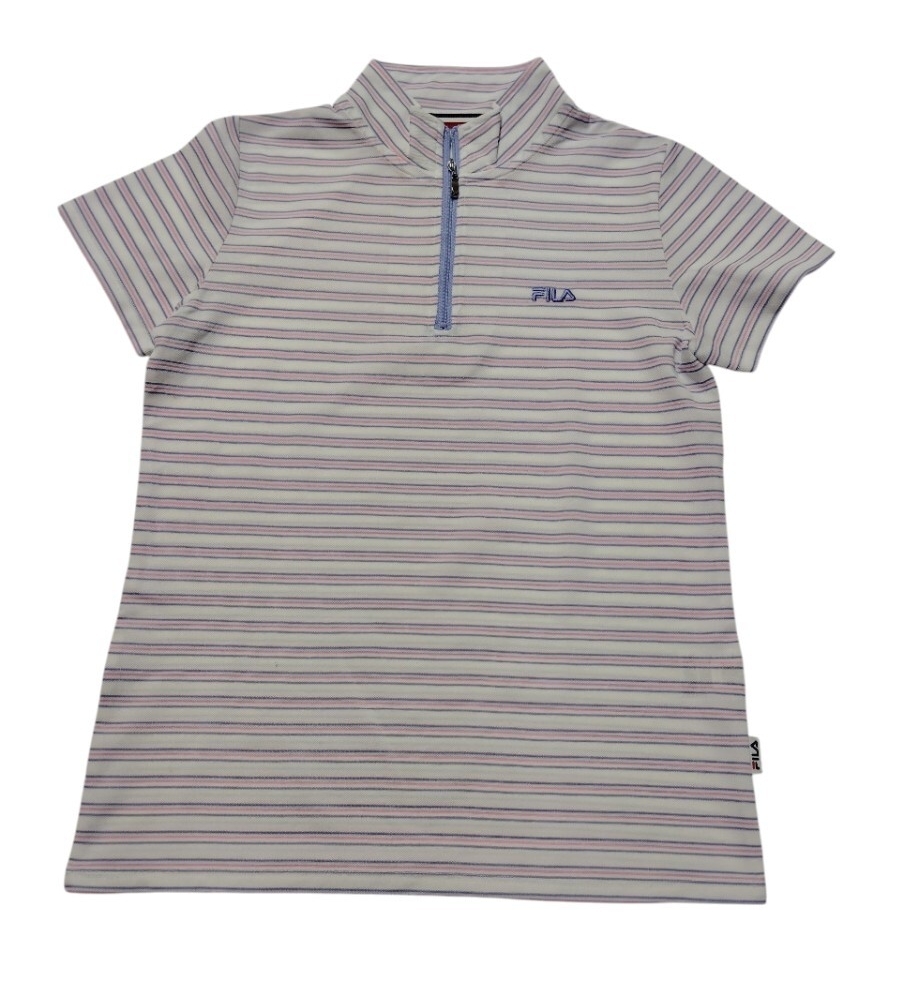 > (sp65)FILA フィラ 半袖シャツ ハーフジップ ストライプ レディース Mサイズ ゴルフ スポーツウェア 匿名配送