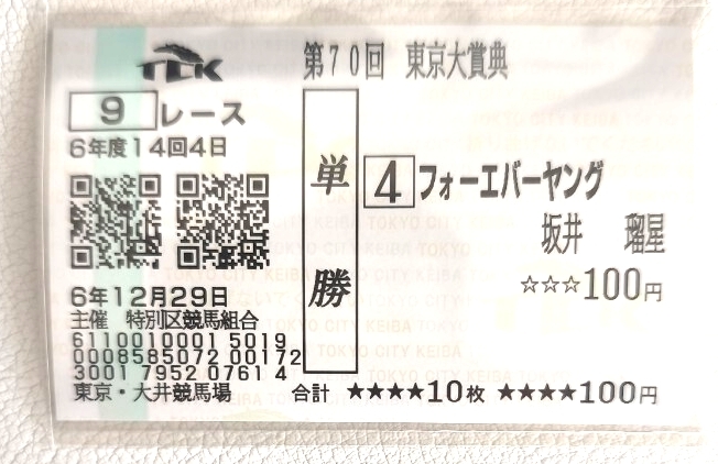 - フォーエバーヤング 東京大賞典2024 現地的中単勝馬券