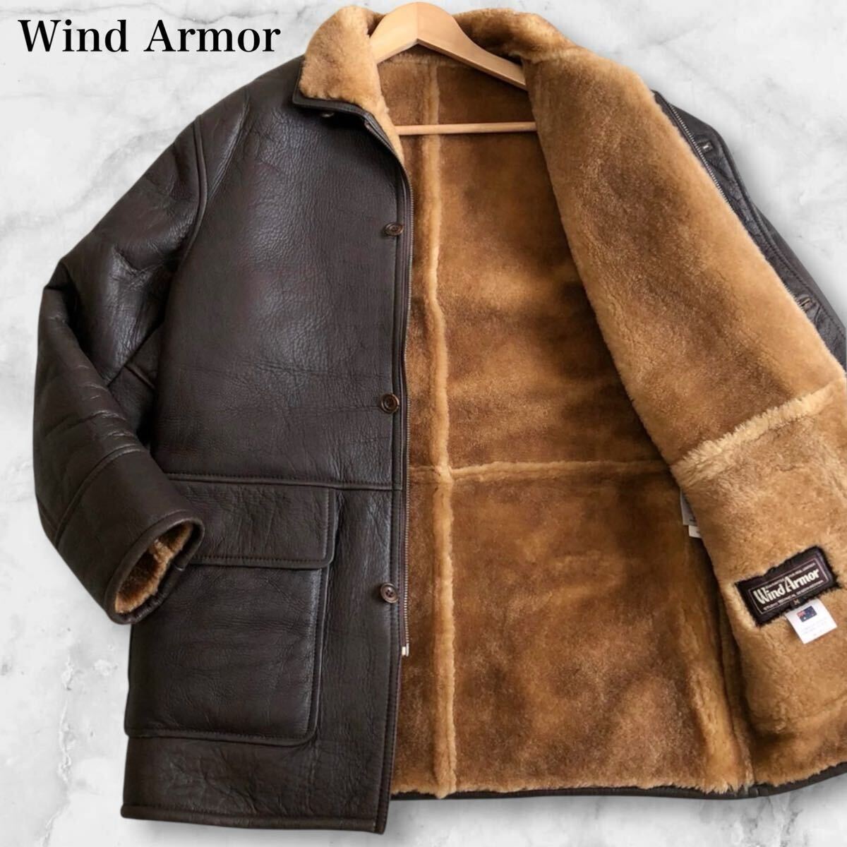 > 極暖の覇者!!!美品●Wind Armor ウィンドアーマー リアルムートンコート 最高級羊毛皮 ラムレザー 羊革 ジャケット ボアファー メンズ L位