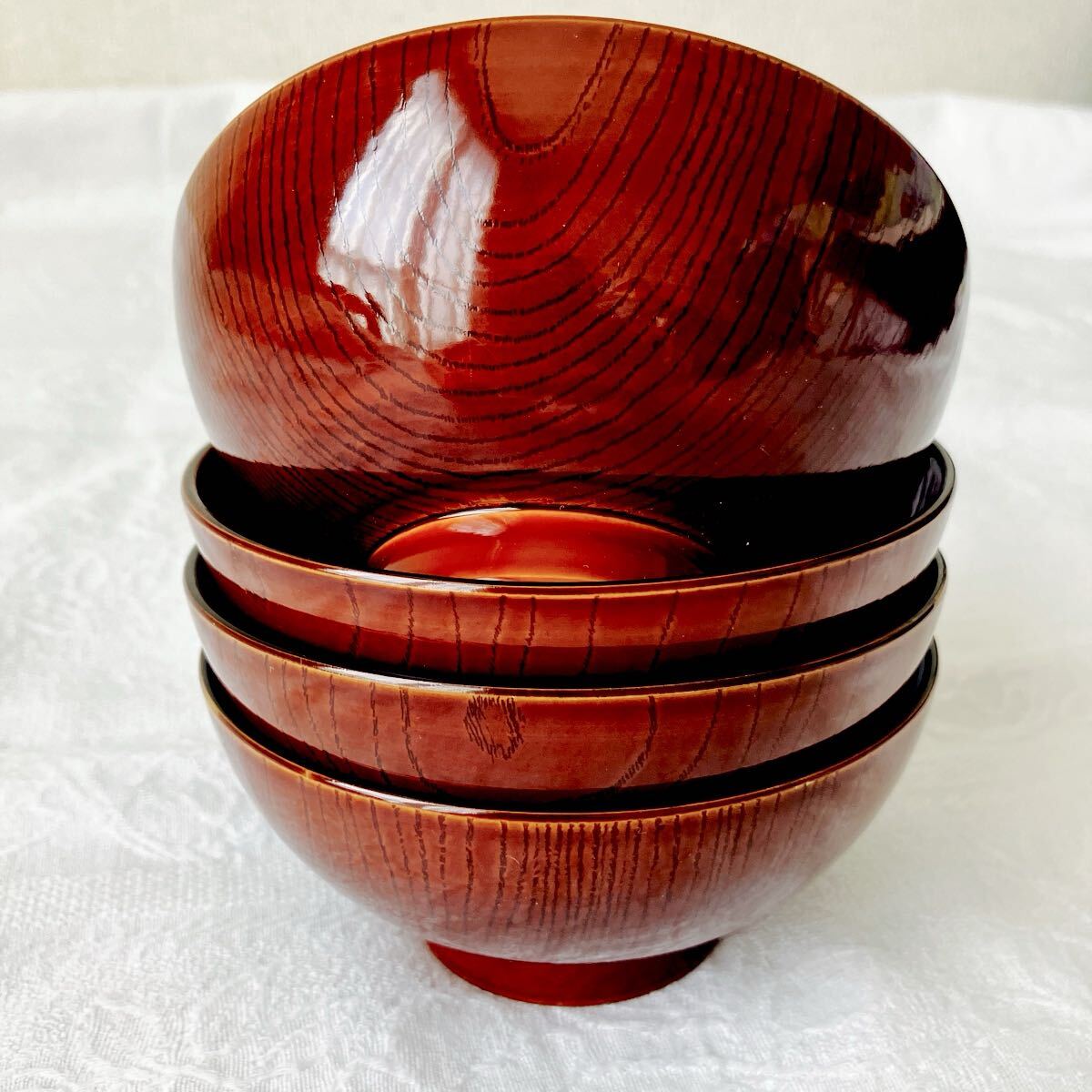 - m35)汁碗 木目 4客セット 味噌汁 吸い物 昭和 レトロ ビンテージ 食器 ヴィンテージ 皿