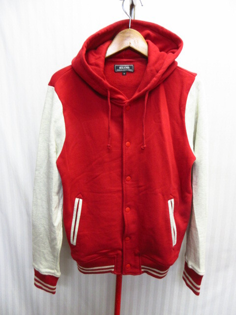 - ビームス フード付きスウェット地スタジャン メンズM 赤 スタジアムジャンパー スウェットジャージトップ パーカー フーディー 09264