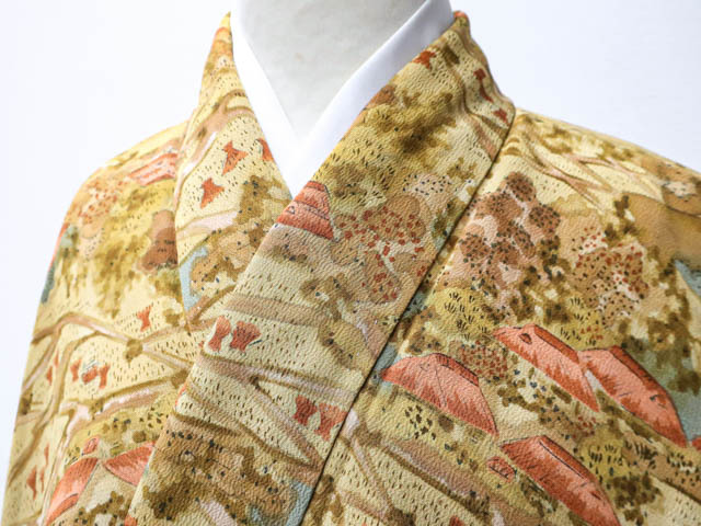 - 《京都一輝堂》【着物】 小紋 風景文 ちりめん 身丈約158cm 裄丈約62cm 24z-5012