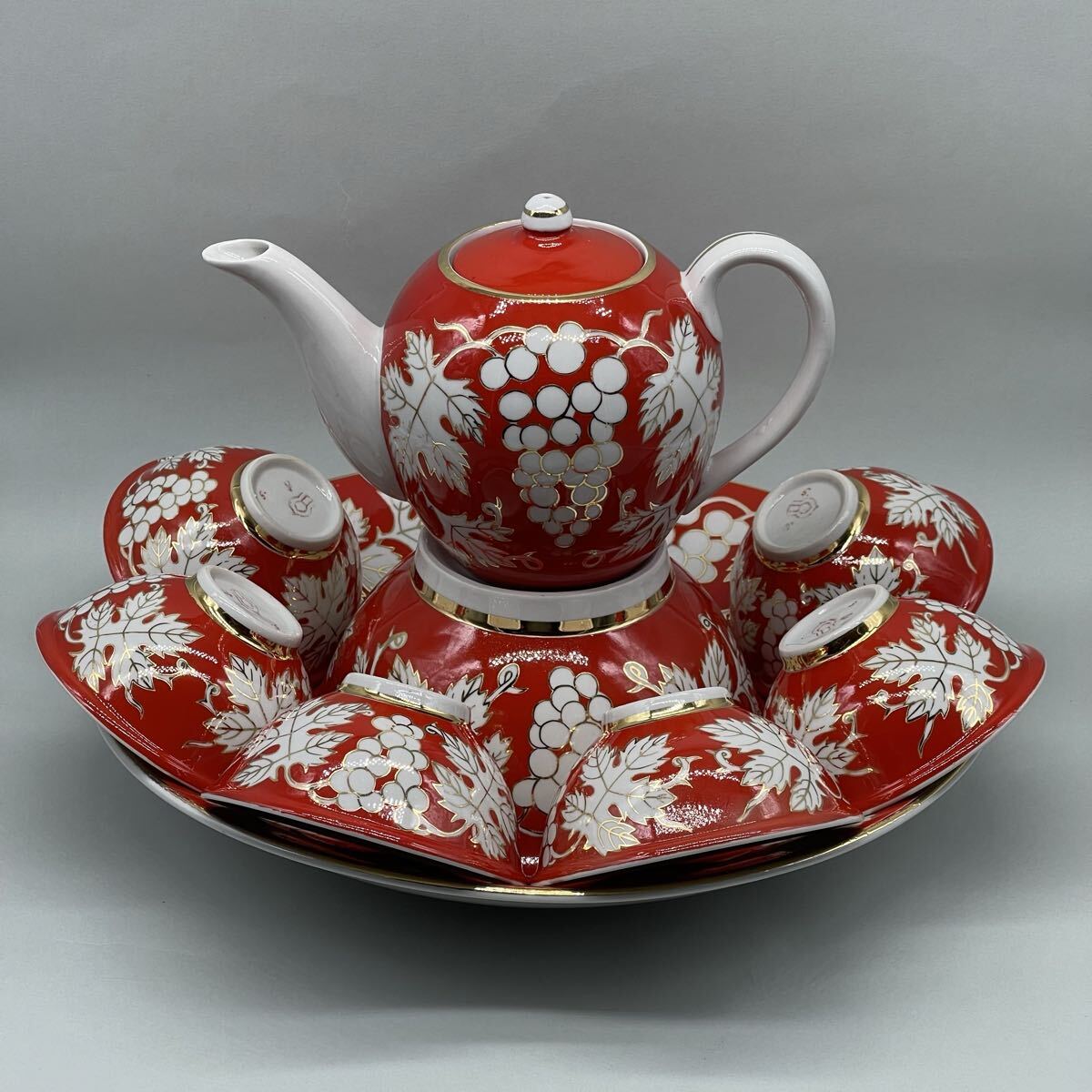 > 1970 ソ連 ハンドペイント 手描 金彩 葡萄紋 茶器セット ビンテージ ウズベキスタン アンティーク