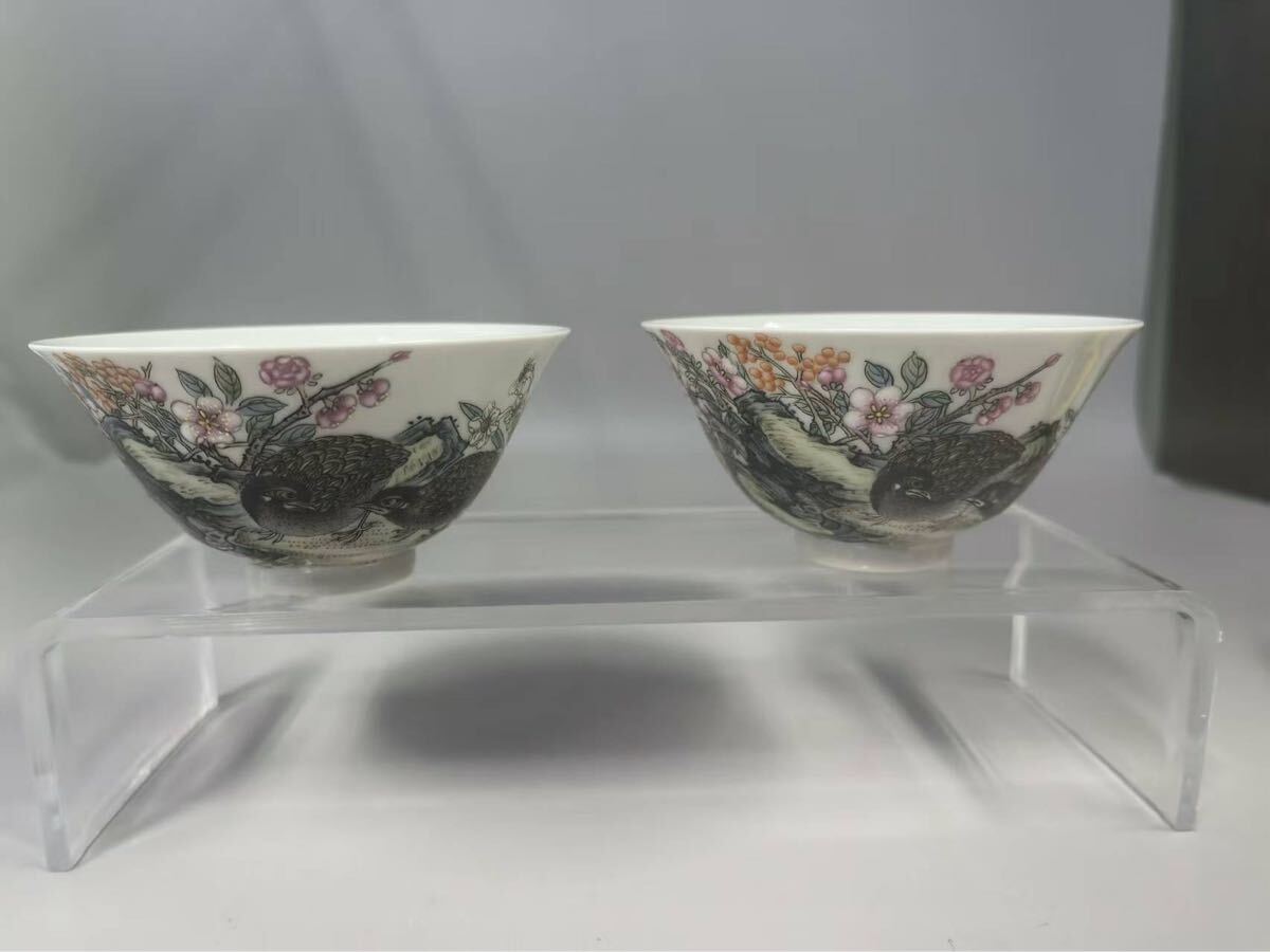 > 【竹河】中国古美術 清時代 雍正 粉彩 茶碗 杯 2点 茶道具 抹茶碗 古玩 骨董 時代物 当時物 js2