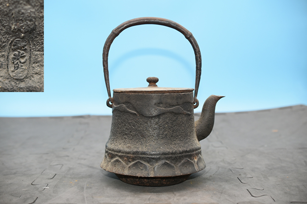 - TY10-5 南部鉄器 照光堂 鉄瓶 鶴紋 鶴図 竹節堤手 茶道具 煎茶道具 古美術 骨董 金属工芸 工芸品 総重量約1.6kg 長期保管 現状品