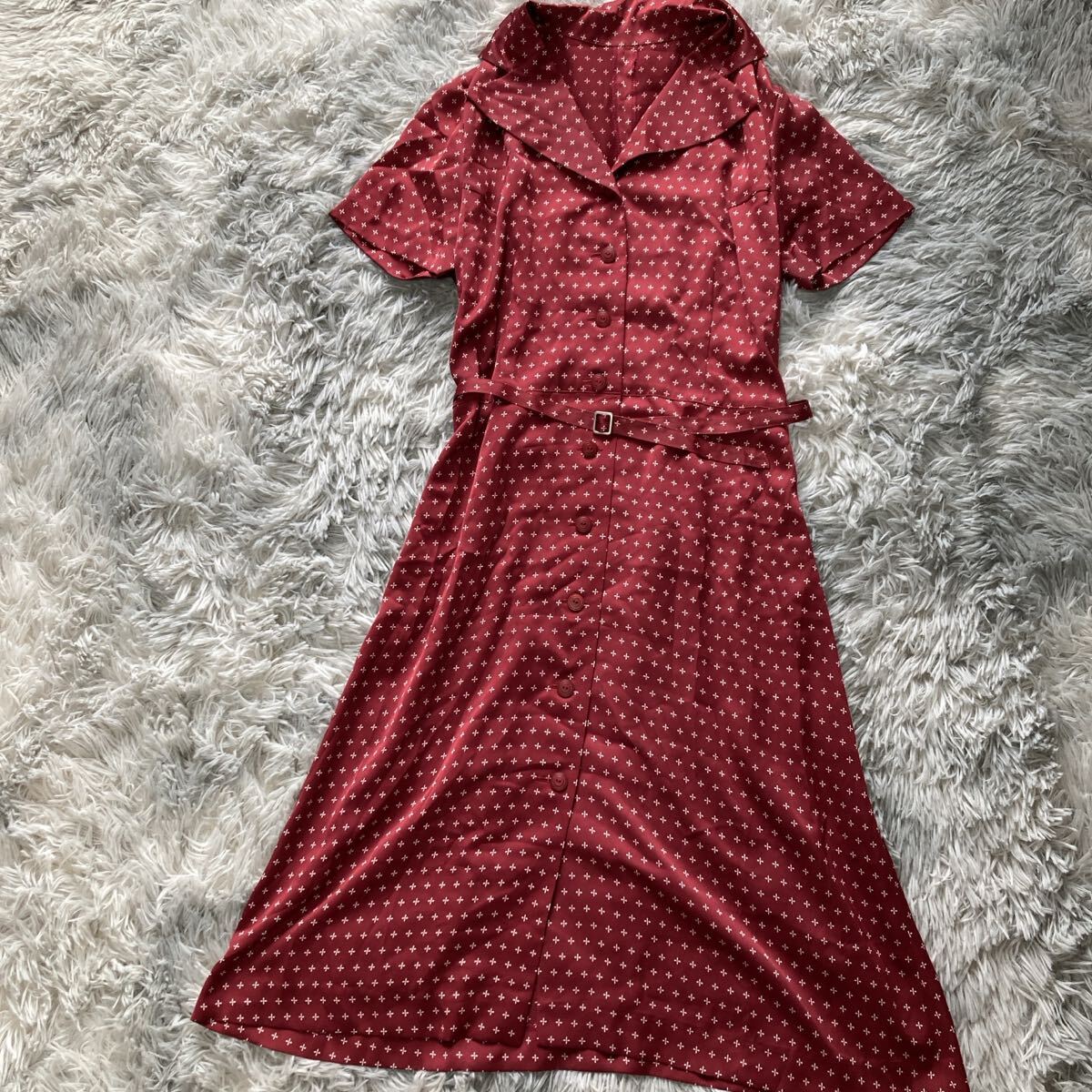 - 22 OCTOBLE ベルト付サテンブラウス柄物ワンピース赤系38☆美品56