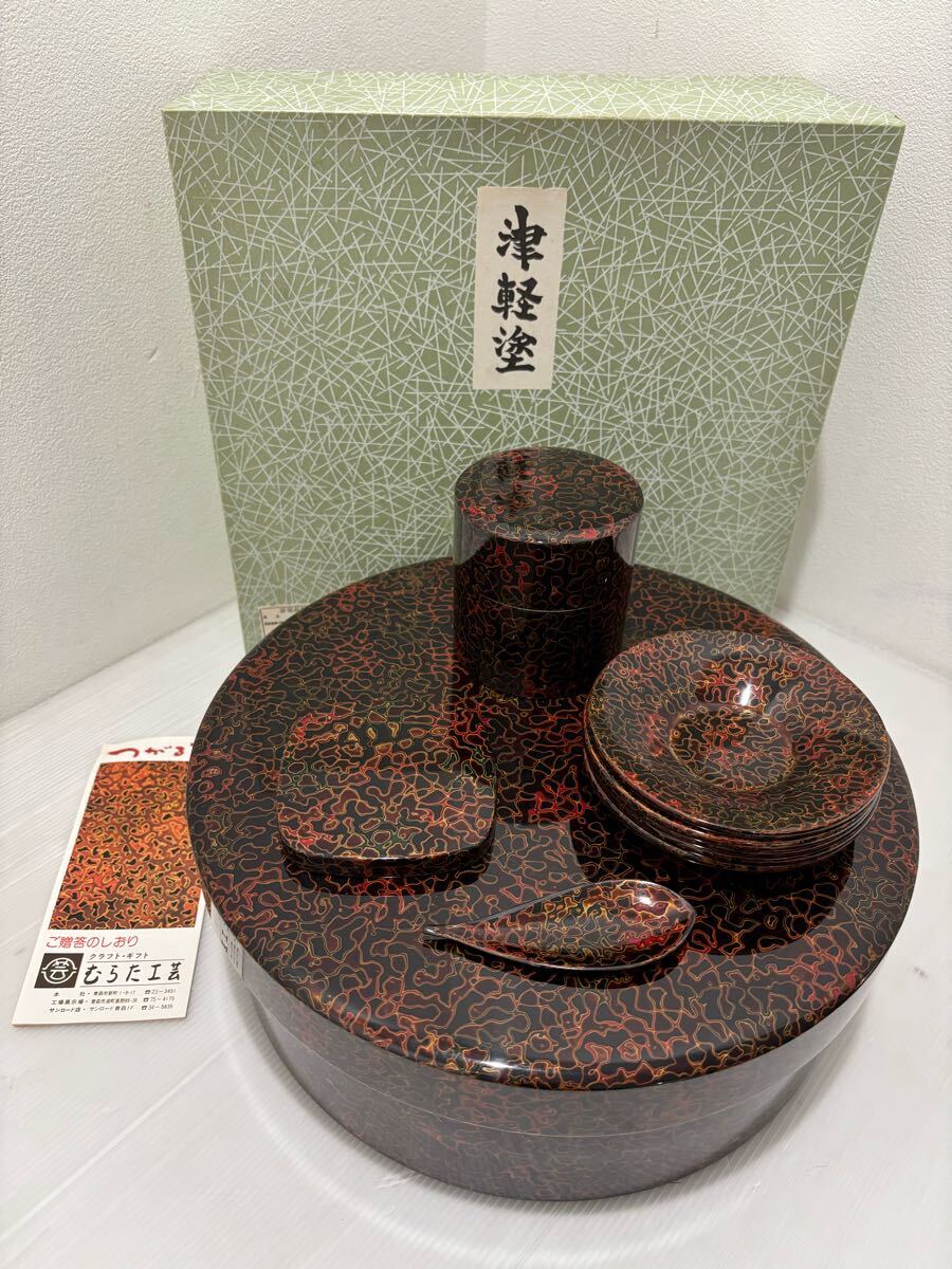 - D(1002w4) 津軽塗 茶枢セット 茶枢 茶托 5枚 茶缶 茶ベラ 急須台 うるし塗り 天然木 茶道具 伝統工芸品 伝統工芸