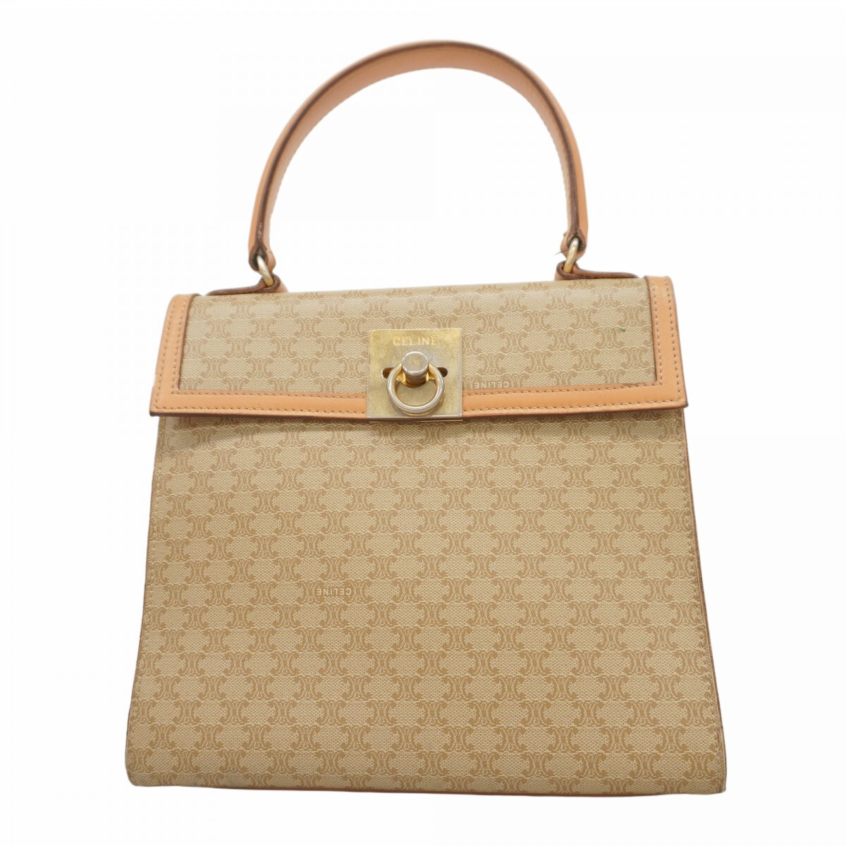 - 【5ie5983-h】セリーヌ ハンドバッグ マカダム PVC ベージュ ゴールド金具【中古】レディース