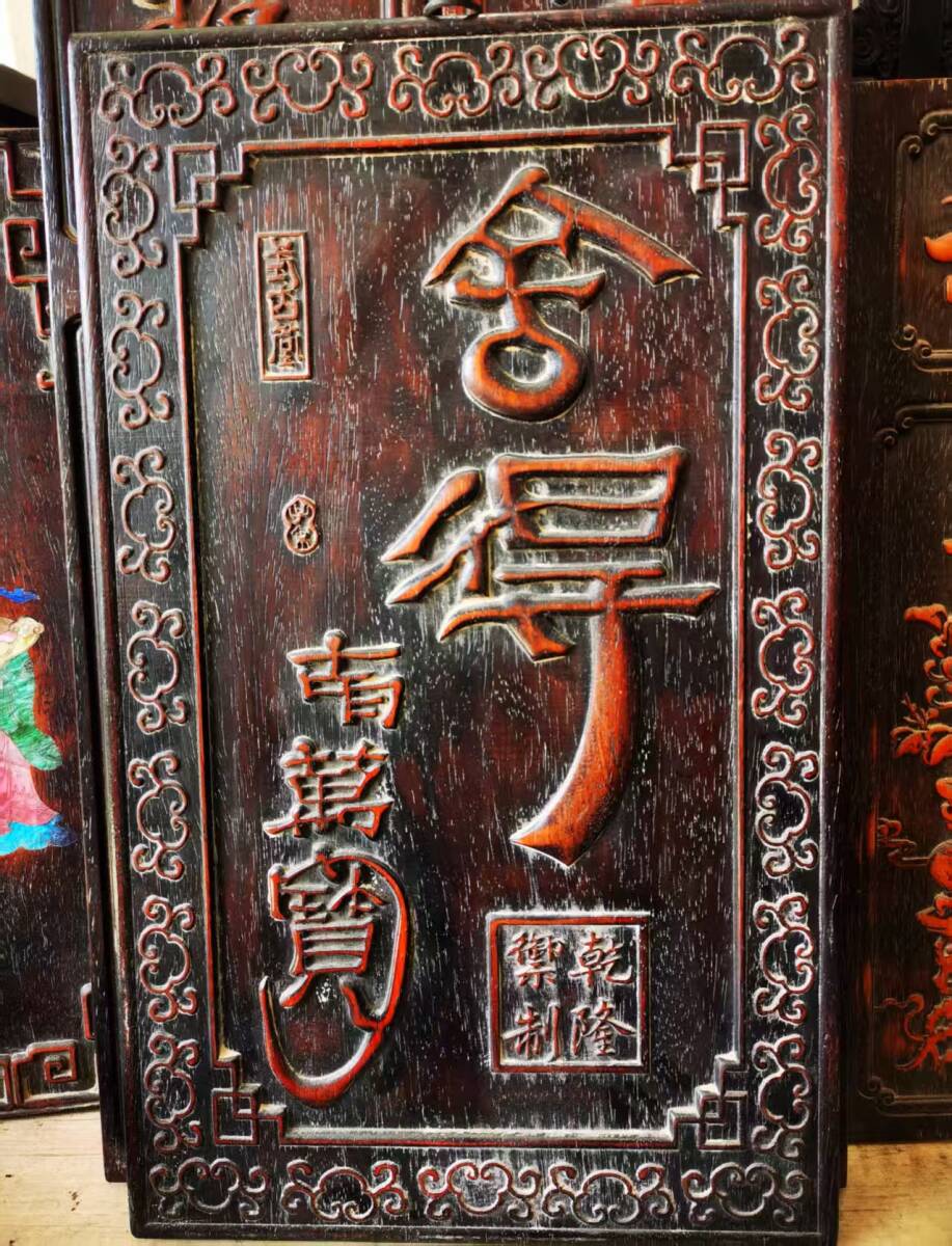 > 清時代 古紫檀木彫 53cm捨得 壁挂 墻挂 中堂挂屏 滿金星牛毛紋 中国唐物 時代物 骨董 極細工 古美術 古置物 木製 東洋彫刻 古賞物 古玩101