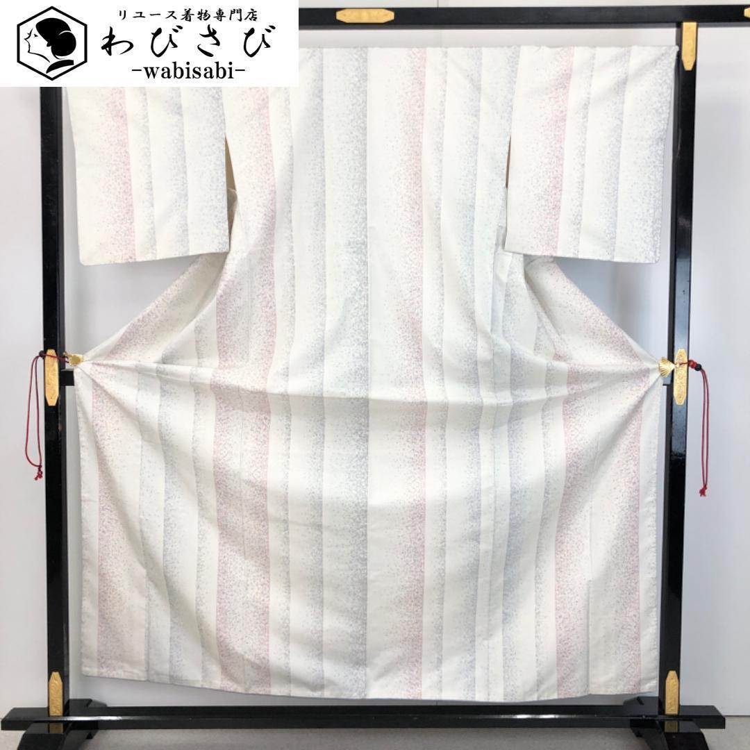 > 本場大島紬 白大島 縦縞模様 卯の花色 K-5313 着物 きもの kimono 和服 和装 中古 リサイクル着物 【送料無料】