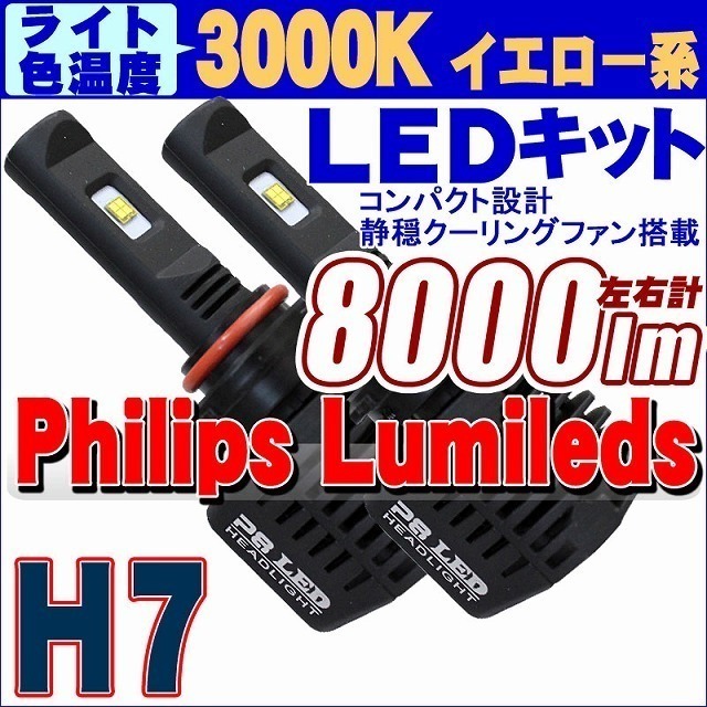 > 【3000K】フィリップスLEDキット 8000lm(左右計) H7 静音省スペースファン ヘッドライト フォグランプ 12V/24V