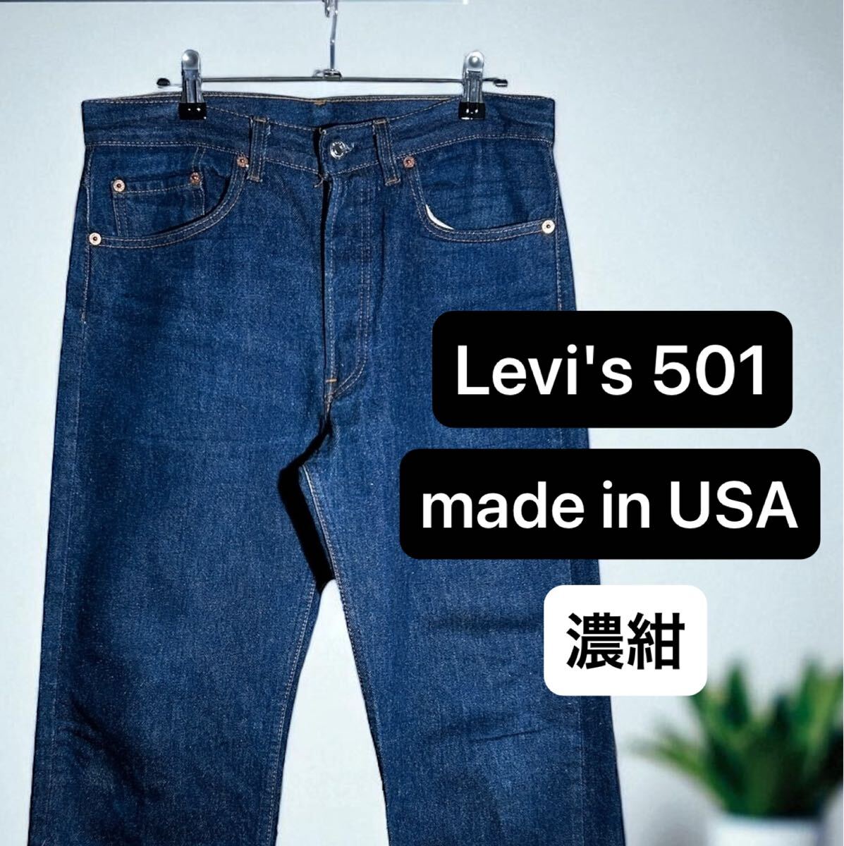 > USA製 1990's Levi's リーバイス 501 ヴィンテージ デニム パンツ ジーンズ 濃紺 濃い チェーンステッチ アメリカ W32 リジット 赤耳 66