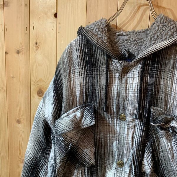 - [KWT2624] BASICEDITIONS 裏起毛フードアウター メンズ ブラックチェック柄 L 80