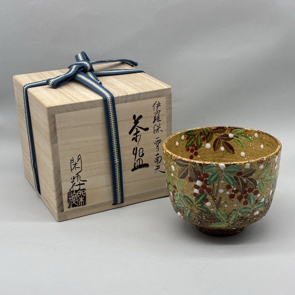 - 南口閑粋 伊羅保 雪南天 茶碗 窯印有り 抹茶碗 共箱 茶道具 京焼 色絵