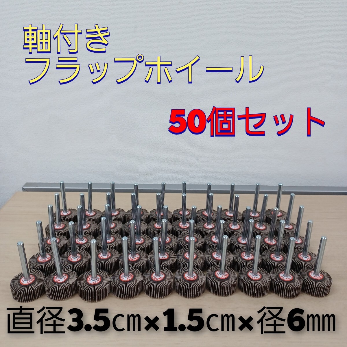 - 石②)軸付きフラップホイール 50個セット 植松工業 粒度240番 フラップホイール グラインダー 研磨 研削 工具 251002(F1-3