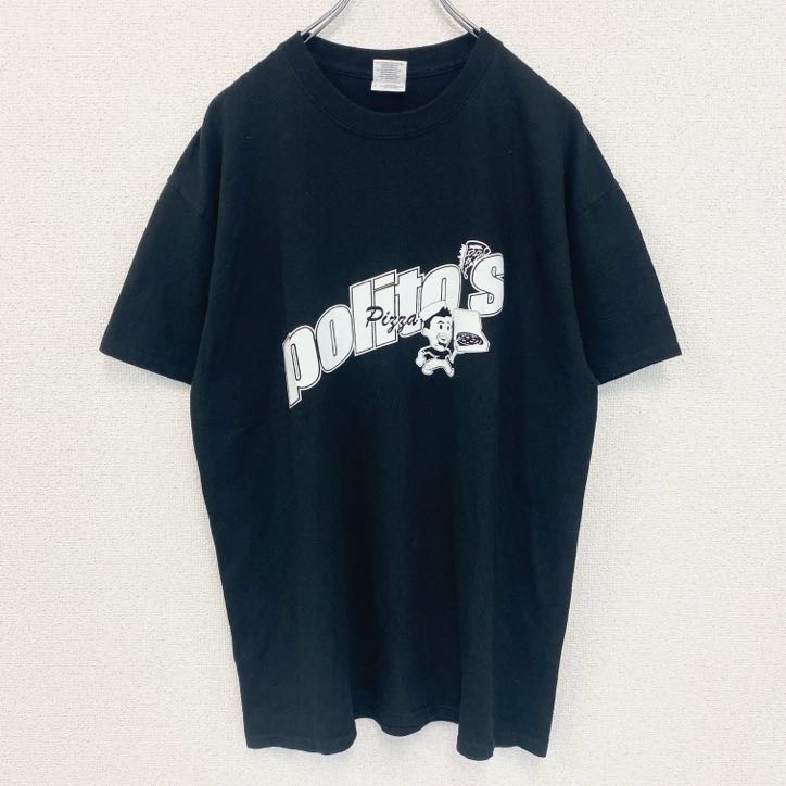 > 古着 used GILDAN ギルダン 半袖クルーネックTシャツ バックプリント PIZZA ピザ politos 黒 Lサイズ