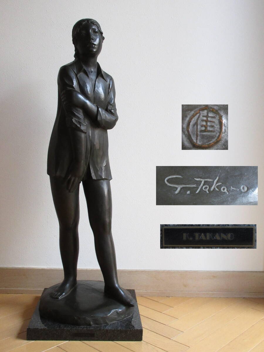 - 高野佳昌 「ワイシャツの女性」 ブロンズ像 大型作品(H86cm 重さ32kg) 大理石台座付き