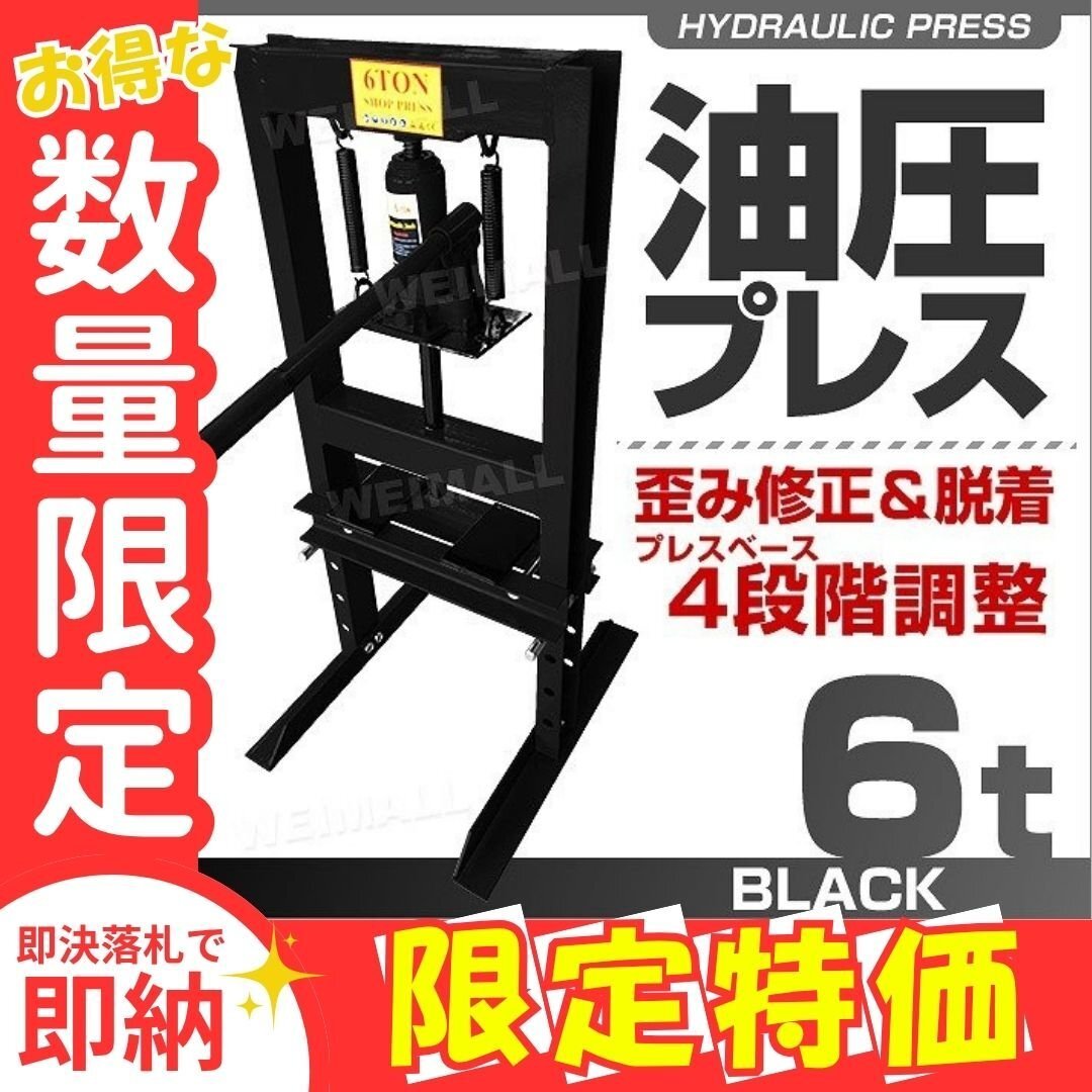 > 【限定セール】新品 油圧プレス ショッププレス 6t 4段階 ストローク 門型プレス機 鉄板 金属 歪み 修正 ベアリング 脱着 車 バイク 整備