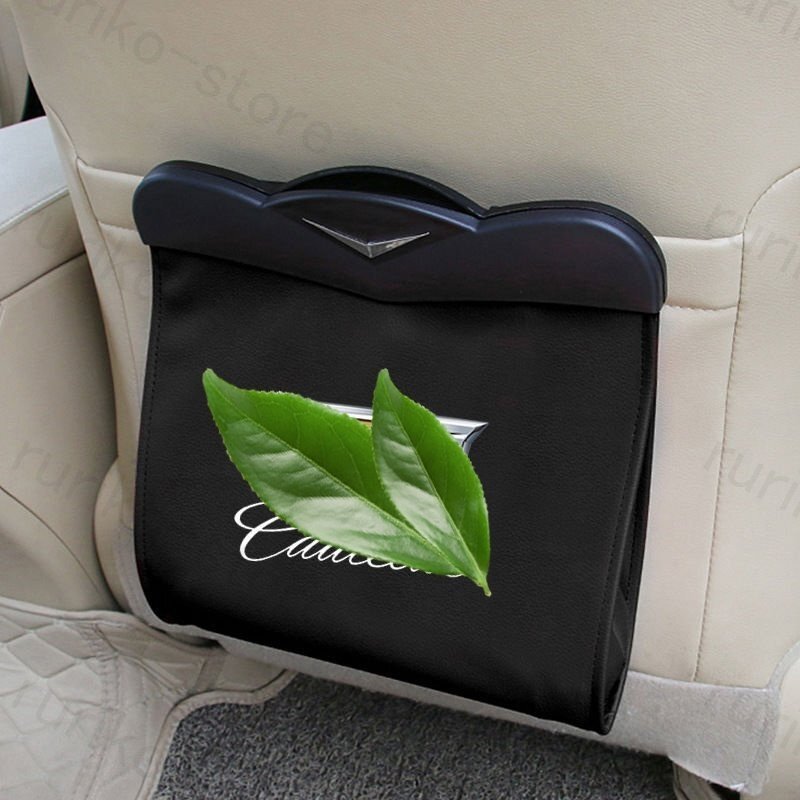 > ゴミ袋 キャデラックCADILLAC車用シートバック収納ポケットレザー製1P 磁気付き LEDライト アクセサリー(ブラック)