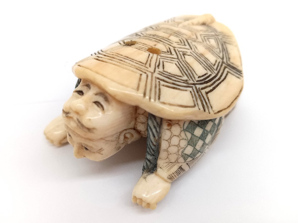 - 根付 亀男 35.9g 在銘 翁 芸能 旧家蔵出し アンティーク コレクター放出品 精巧彫り 超絶技巧 細密彫刻 美術品 時代物 印籠堤物 ストラップ