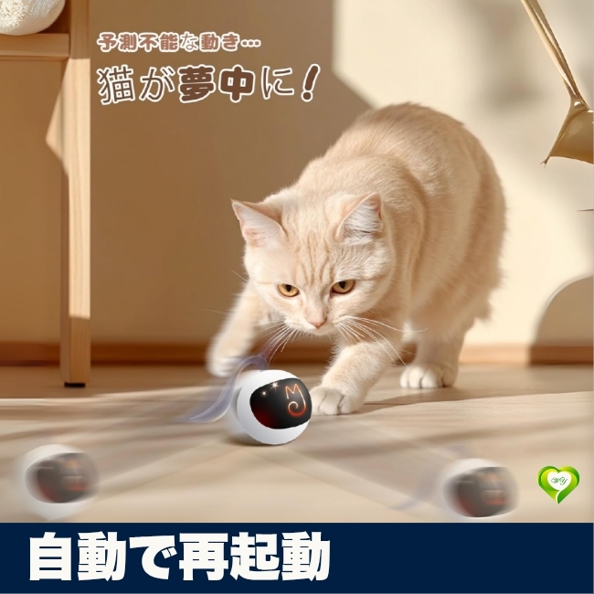- 【自動で再起動】猫おもちゃ モーションセンサー 光点灯 電動ボール 羽根付き 自動転がり 人気 おすすめ