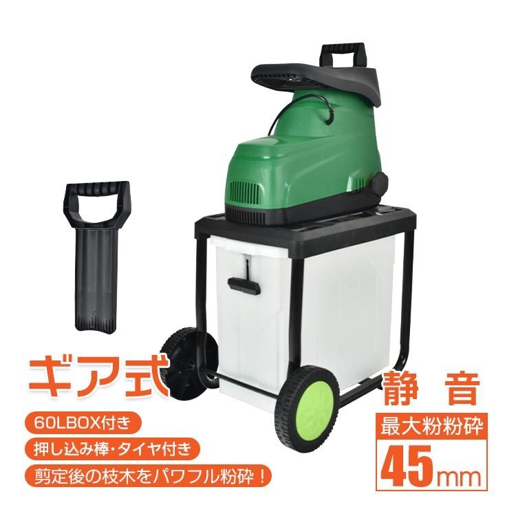 - 送料無料 ガーデンシュレッダー 電動 粉砕機 家庭用 BOX付き 静音 ギヤ式 電動粉砕機 シュレッダー 枝 ウッドチッパー 葉処理 60L sg055