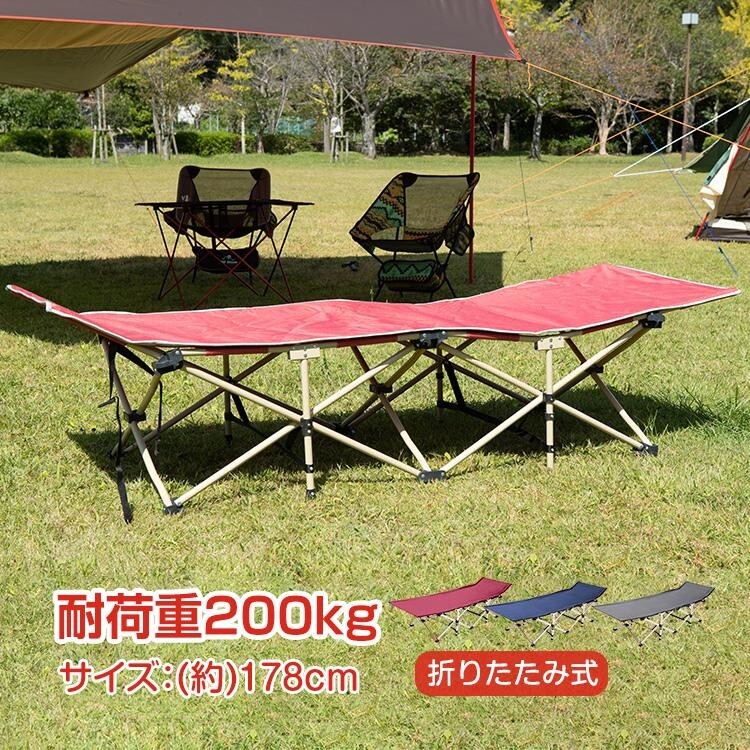 - 送料無料 アウトドアベッド キャンプコット コット 折りたたみベッド 簡易ベッド シングル コンパクト 簡易コット 仮眠 耐荷重200kg ad064