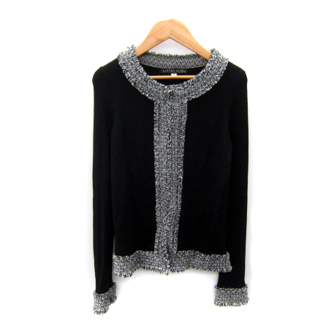 > ミッシェルクラン MICHEL KLEIN ニットカーディガン ミドル丈 ラウンドネック フリンジ 38 M 黒 ブラック /SY8 レディース