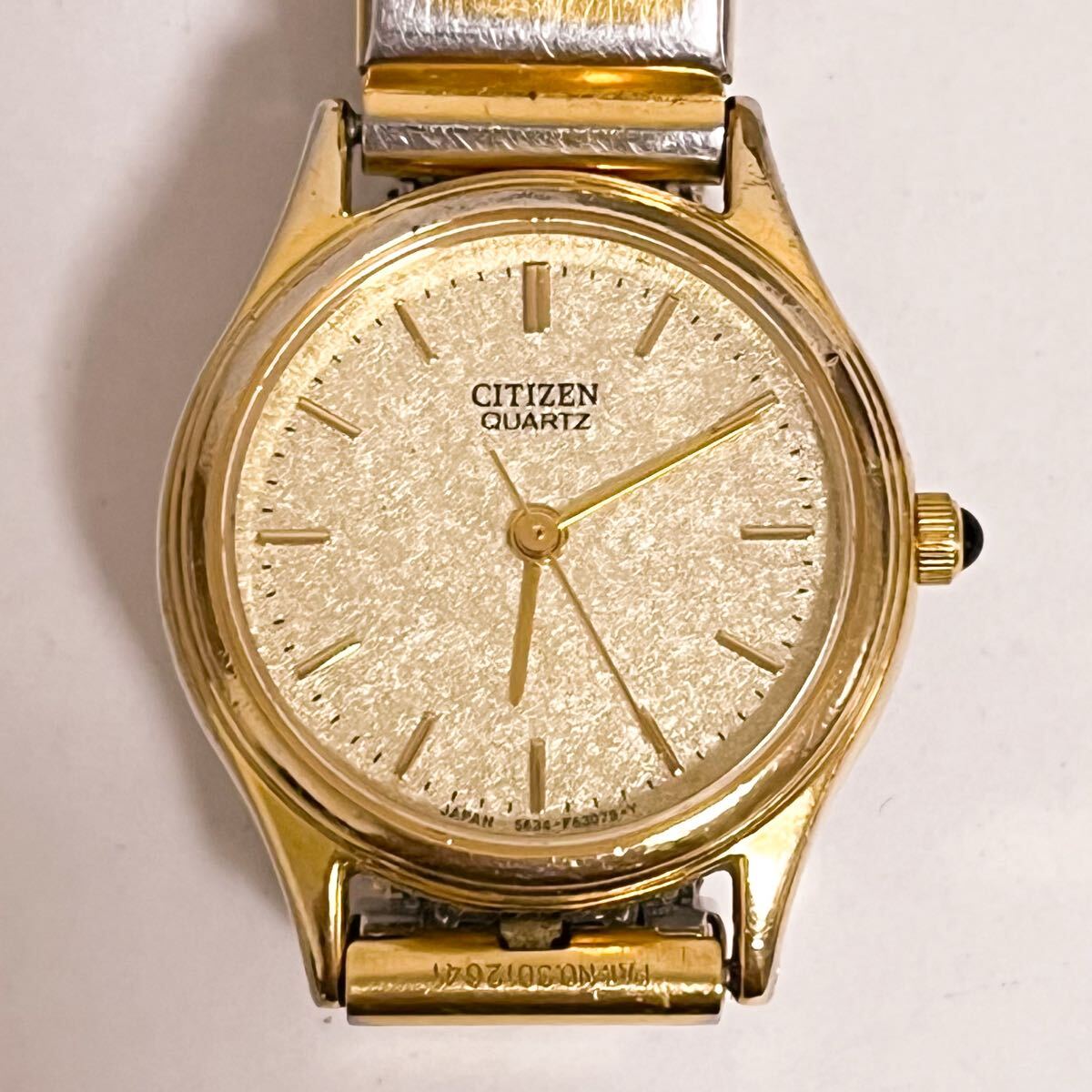 - 和851A★ CITIZEN シチズン クォーツ 腕時計 ウォッチ 3針 5634-F62245 ゴールド 伸縮メタルバンド レディース