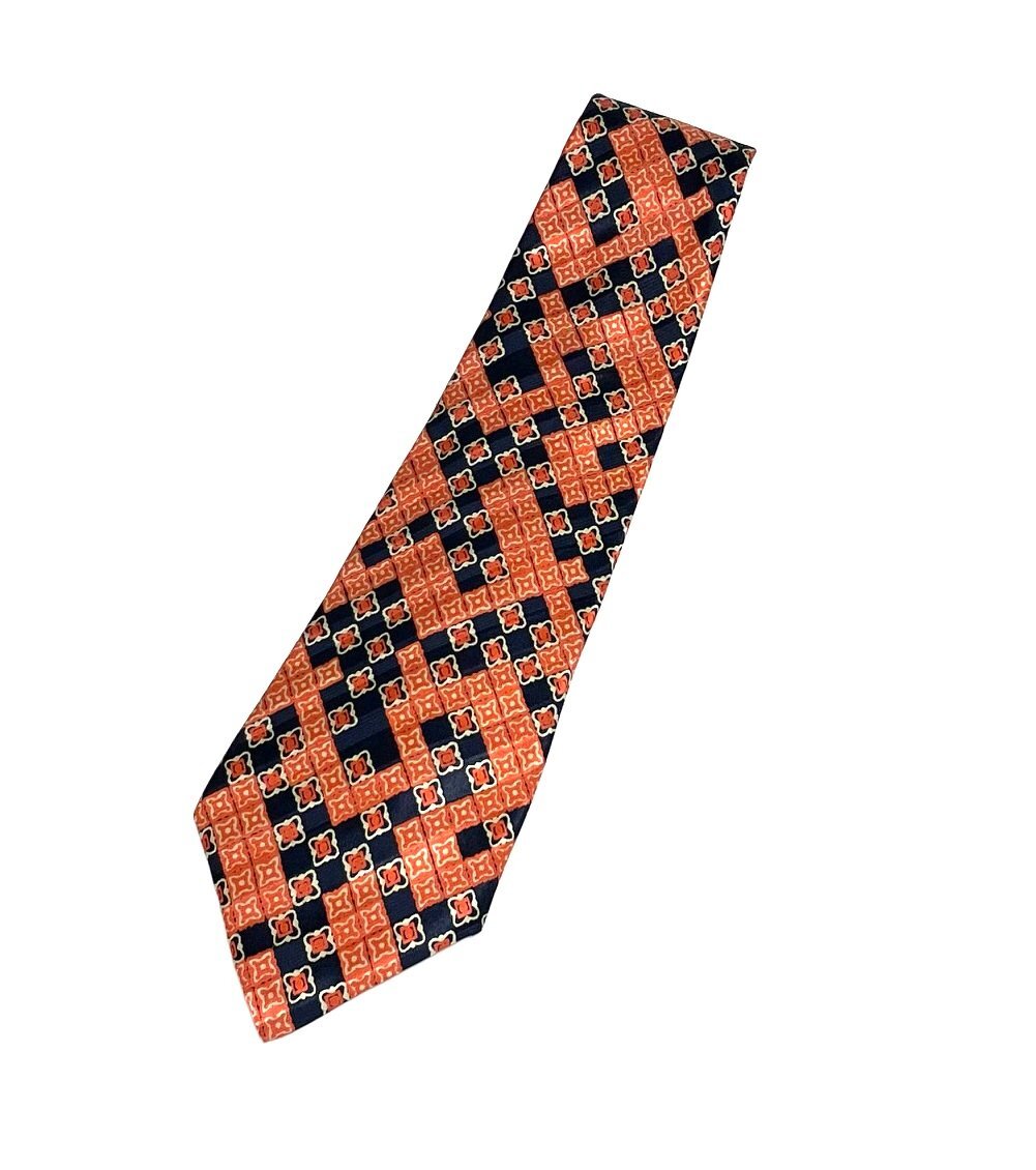 > YVES SAINT LAURENT イヴサンローラン ALL SILK ネクタイ 柄 光沢 オレンジ × ダークネイビー 系