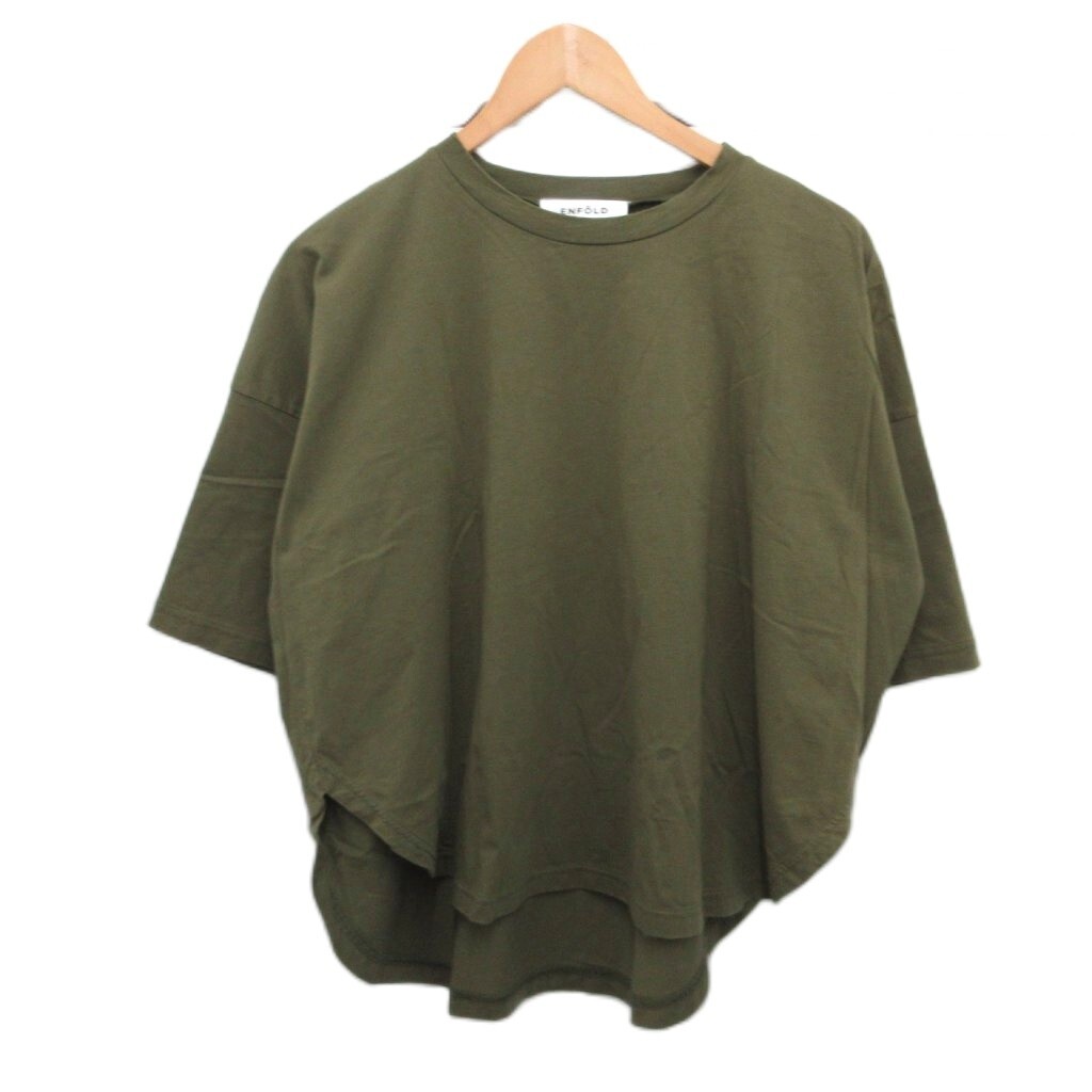 - エンフォルド ENFOLD 2021年モデル コンパクト天竺BOXTシャツ 半袖 38 S 緑 グリーン 300ES280-3350 レディース