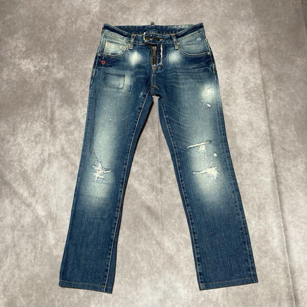 - ディースクエアード DSQUARED2 RICH MAN デニムパンツ ジーンズ ジーパン スリム 細身 ビックロゴ バックロゴ ダメージ加工 イタリア製 42