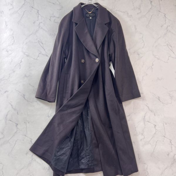 - カシミヤ100% ダブルチェスターコート 光沢 肩パッドなし 高身長 レディース 茶色 ブラウン系 B1541