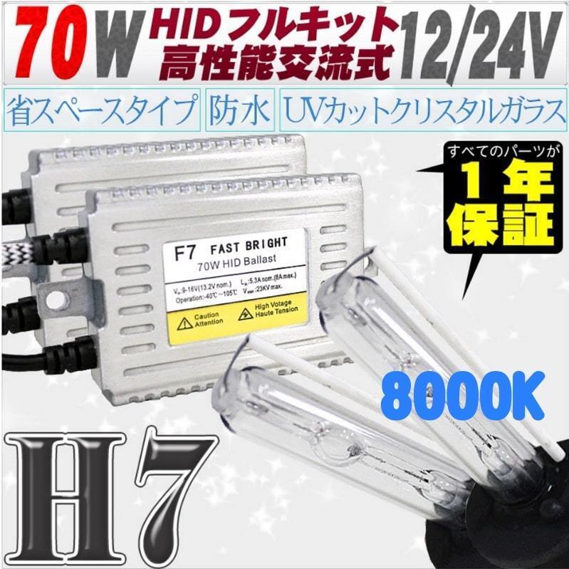 - 高性能 薄型HIDキット 70W H7 リレー付 8000K 12V/24V 【交流式バラスト&クリスタルガラスバーナー】