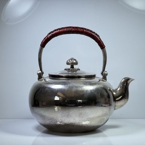 - 純銀製 羽田花押 銀瓶 箱付 湯沸 煎茶道具 工芸品 古美術品 純銀保証 やかん