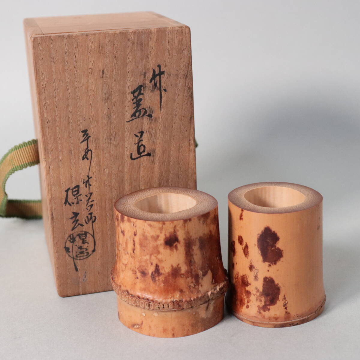 - 平安 竹器師 西川楳玄 作 竹 蓋置 一双 茶道具 F0927C10