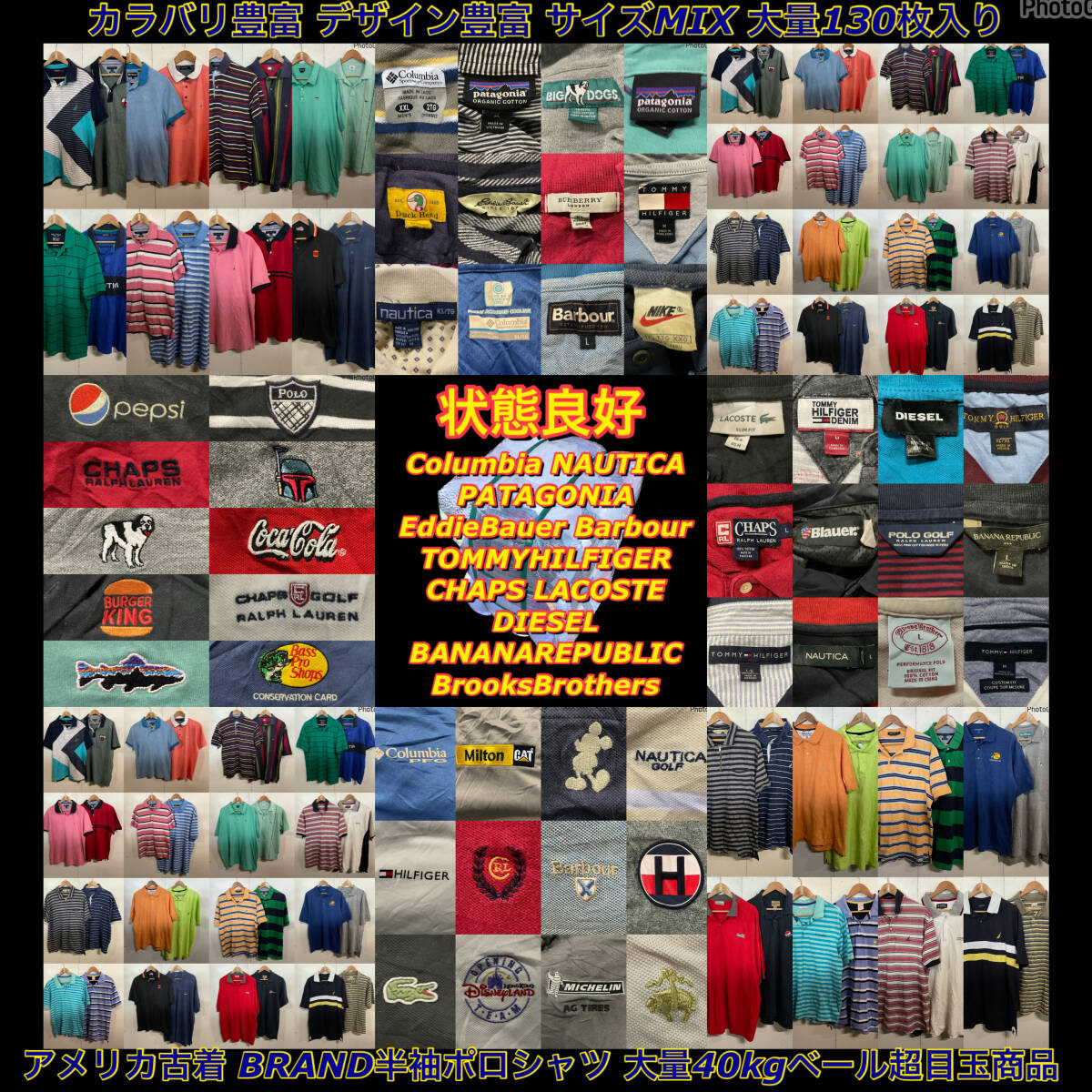 - 【T1517】★130枚入り★ アメリカ古着 状態良好 BRAND半袖ポロシャツ 大量40kgベール 超目玉商品 カラバリ豊富 デザイン豊富 サイズMIX