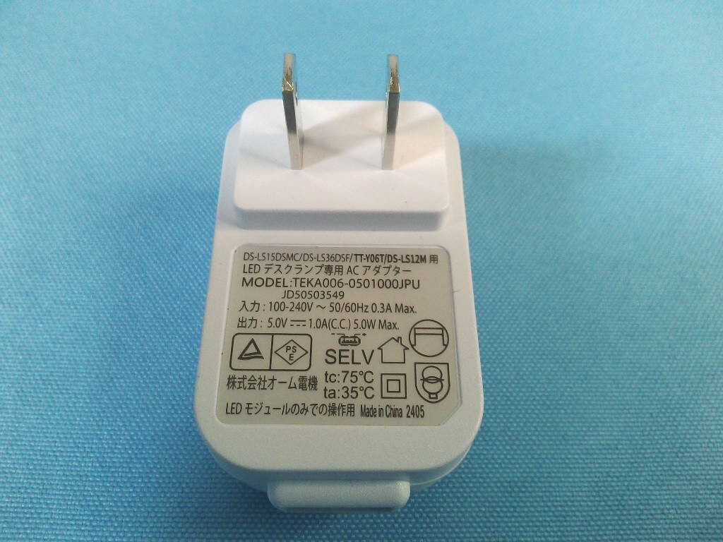 > DS-LS15DSMC/DS-LS36DSF/TT-Y06T/DS-LS12M用 LEDデスクランプ専用 USB充電器 TEKA006‐0501000JPU(5.0V 1.0A)★ 動作品