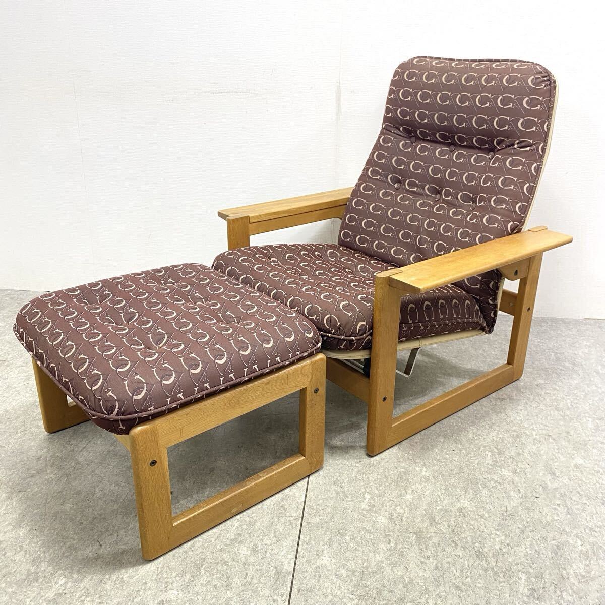 > ★ 希少 karimoku カリモク ラウンジチェア リクライニングチェア オットマン付き 椅子 チェア ビンテージ レトロ ★25100303K2