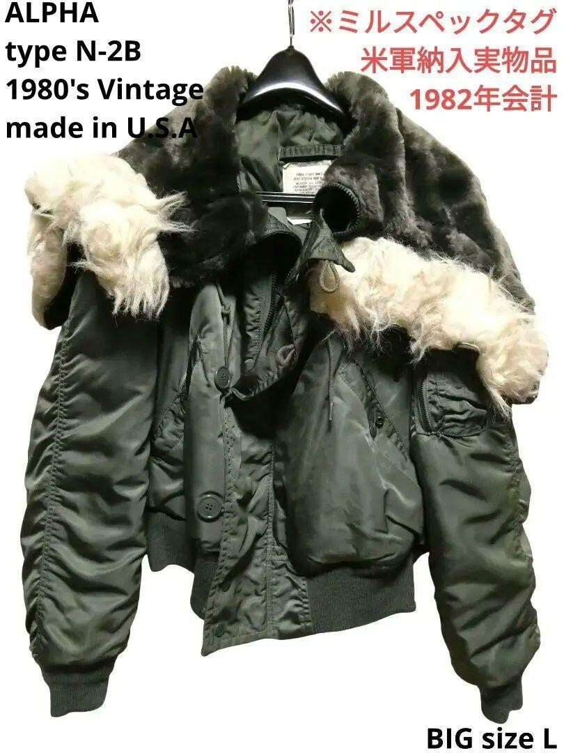 > レアモデル!アメリカ製!82年製ヴィンテージ!米軍実物品ミルスペックタグ!アルファN-2BフライトジャケットALPHAサイズLオリーブ