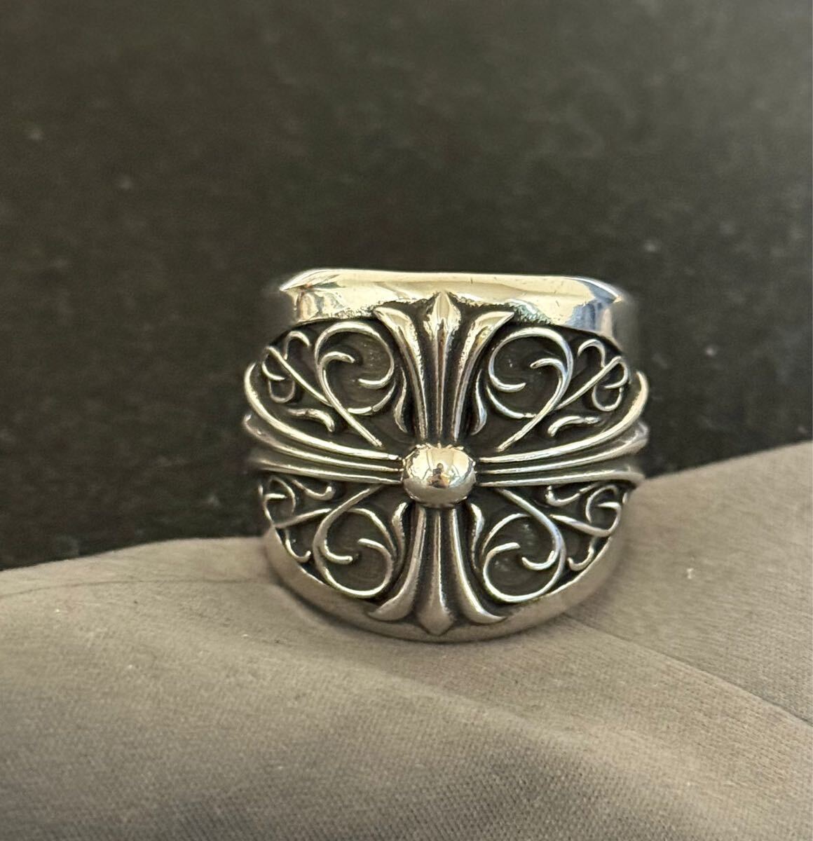 - クロスオーバルリング シルバー フローラルリング クロスリング 人気クロスリング