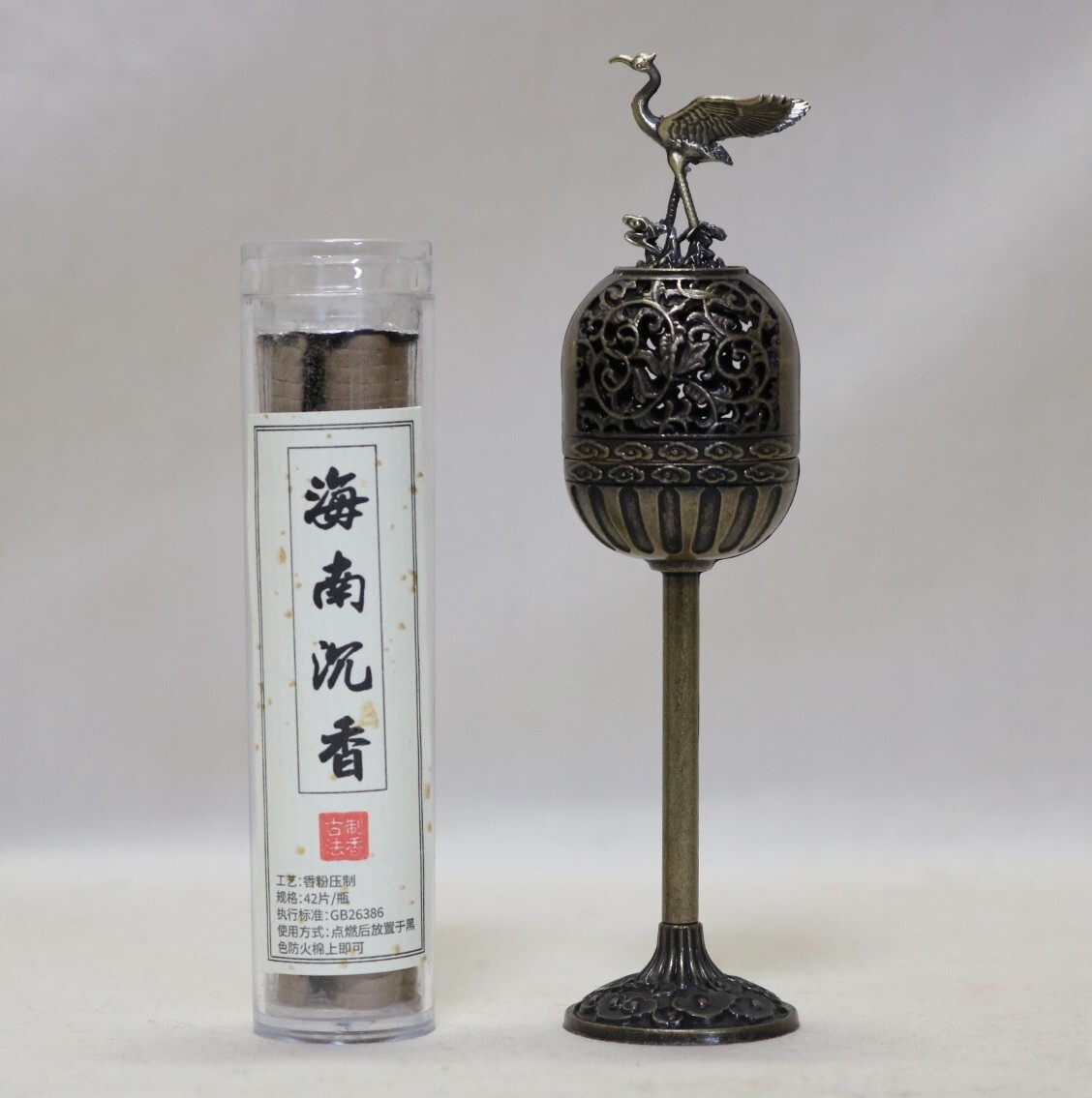 - 香炉 仙鶴高脚炉と唐土香のセット DY29