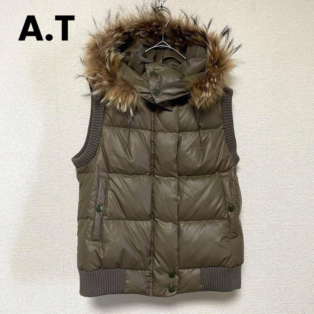 - zo5 A.T エーティー/ファーダウンベスト/フーデットキルティングジレ