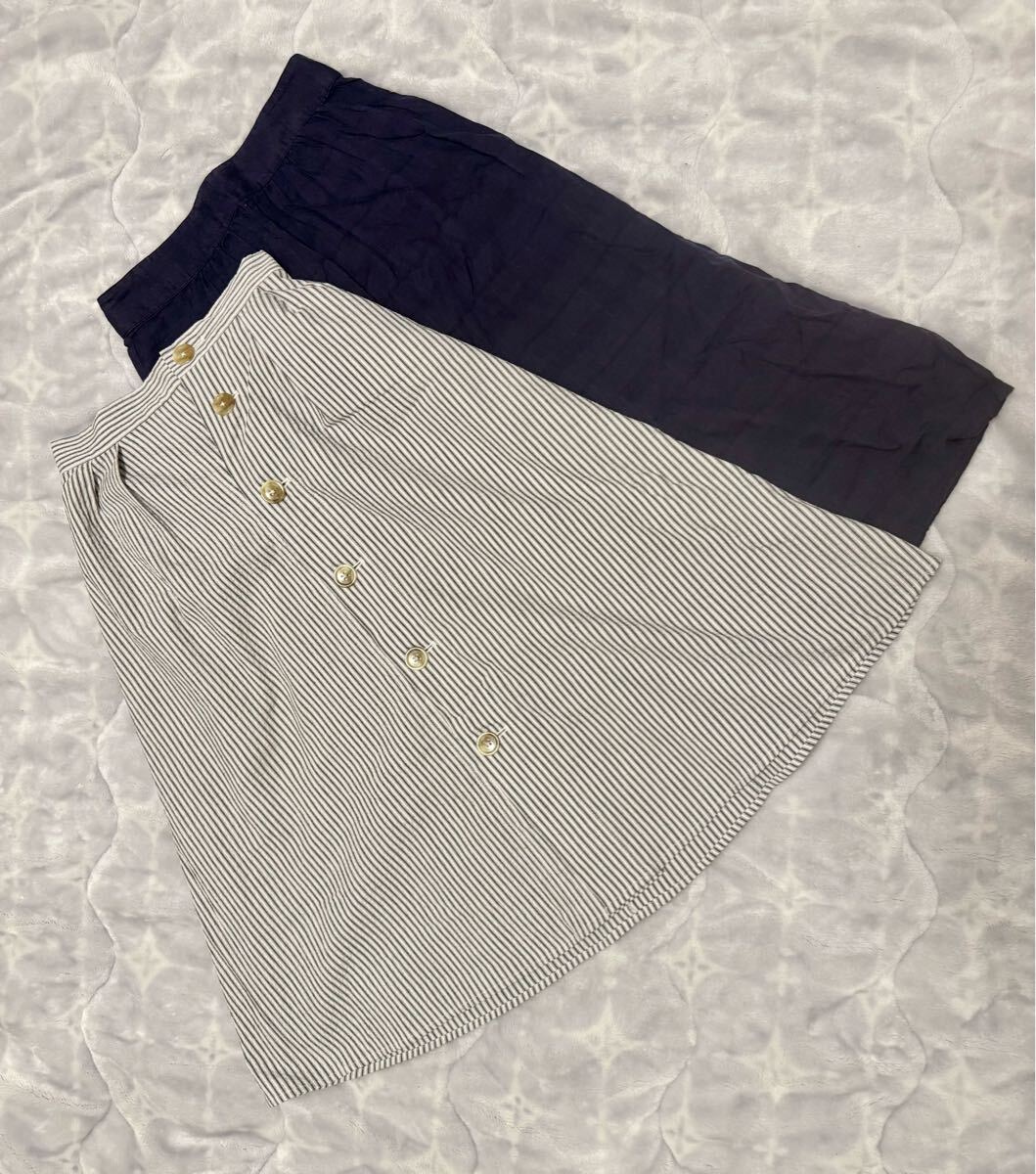 - gap GU 2枚セット XS S ストライプ ネイビー 紺色 コットン シアサッカーフレアスカート フロントボタン Aライン