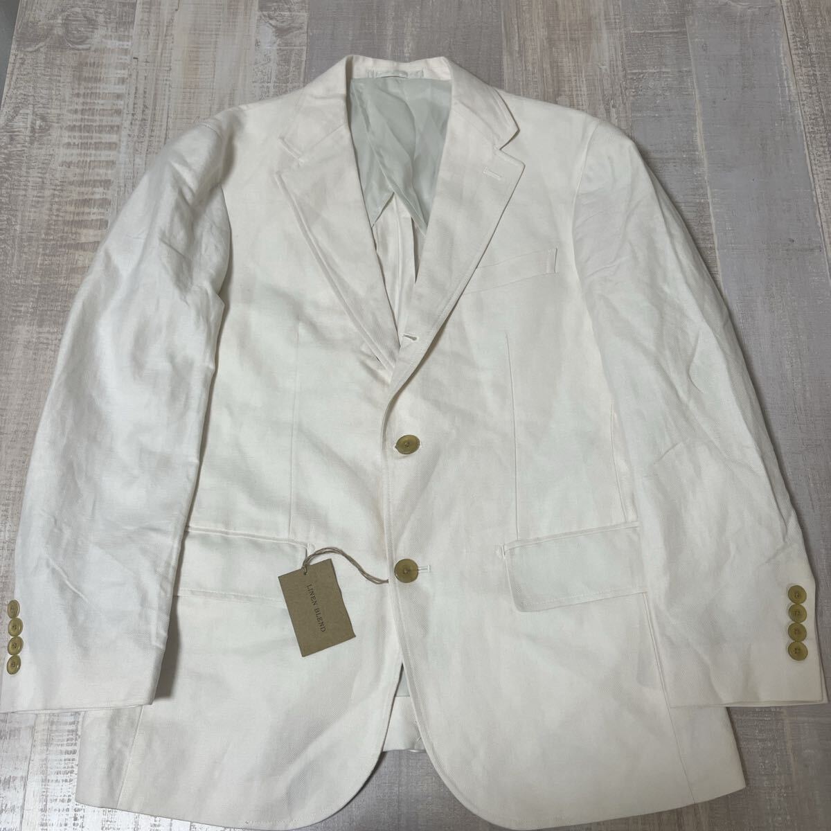 - 【新品タグ付 希少 廃盤】00s OLD UNIQLO 段返り 3B リネンブレンド テーラードジャケット オールドユニクロ ヴィンテージ 麻 オフホワイト